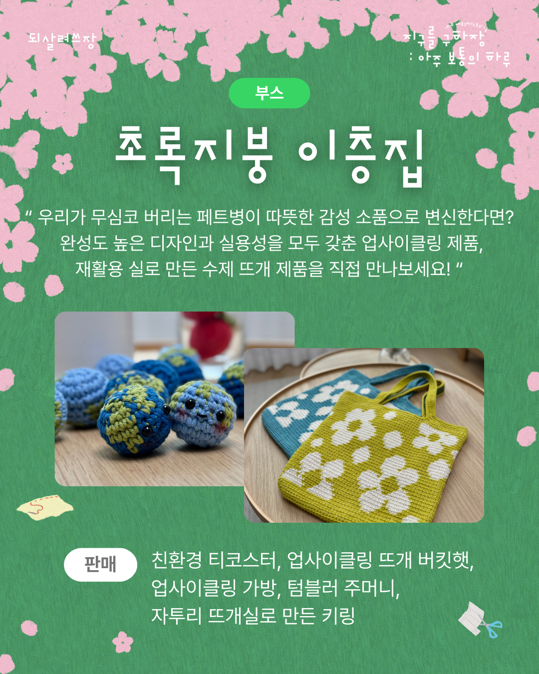 โ ์นํ๊ฒฝ ํฐ์ฝ์คํฐ, ์ ์ฌ์ดํด๋ง ๋จ๊ฐ ๋ฒํทํ, ๊ฐ๋ฐฉ, ํ ๋ธ๋ฌ ์ฃผ๋จธ๋, ์ํฌ๋ฆฌ ๋จ๊ฐ์ค๋ก ๋ง๋ ํค๋ง ํ๋งค