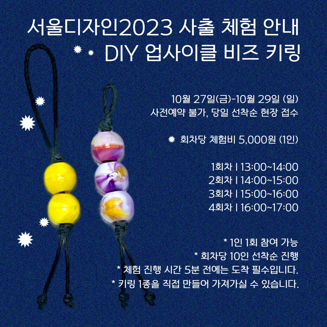 * 체험비는 5,000원으로 업사이클 키링 1개 제작이 가능합니다.