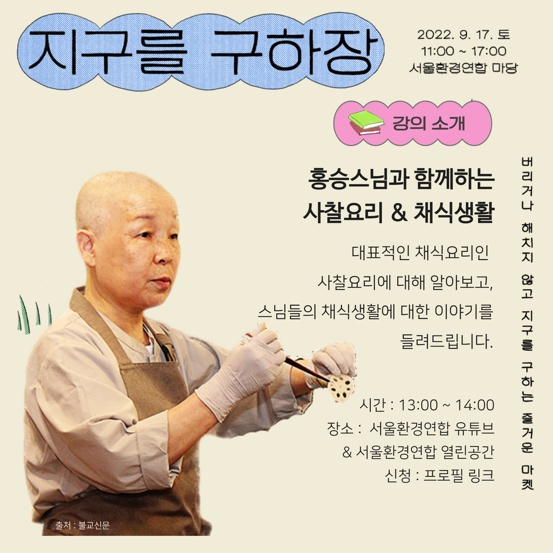 🔸1부 홍승스님과 함께하는 사찰요리 & 채식생활 13:00 ~ 14:00