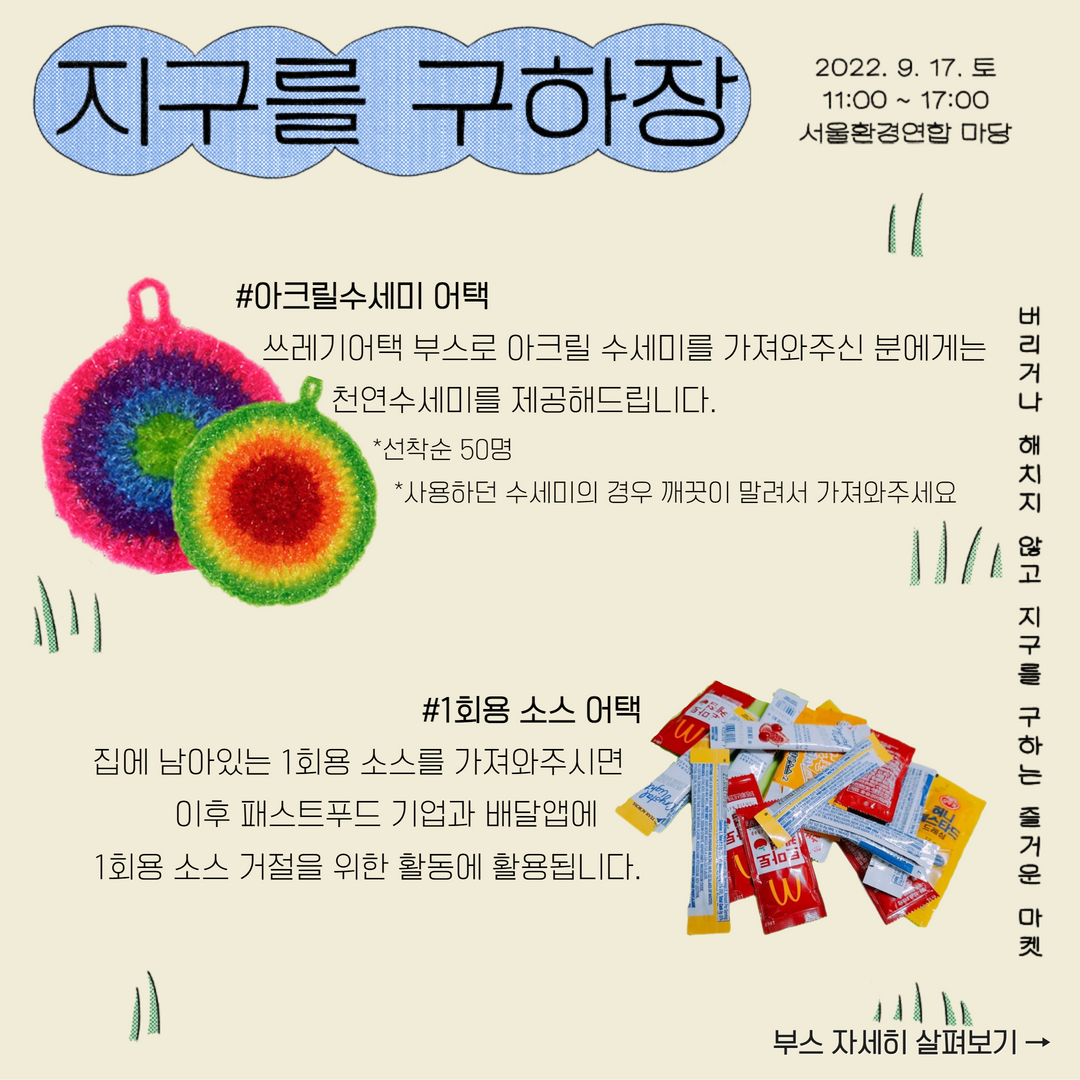 버리지 않고 해치지 않고도 지구를 구하는 즐거운 마켓 '지구를 구하장'의 1부 프로그램을 소개합니다🙌